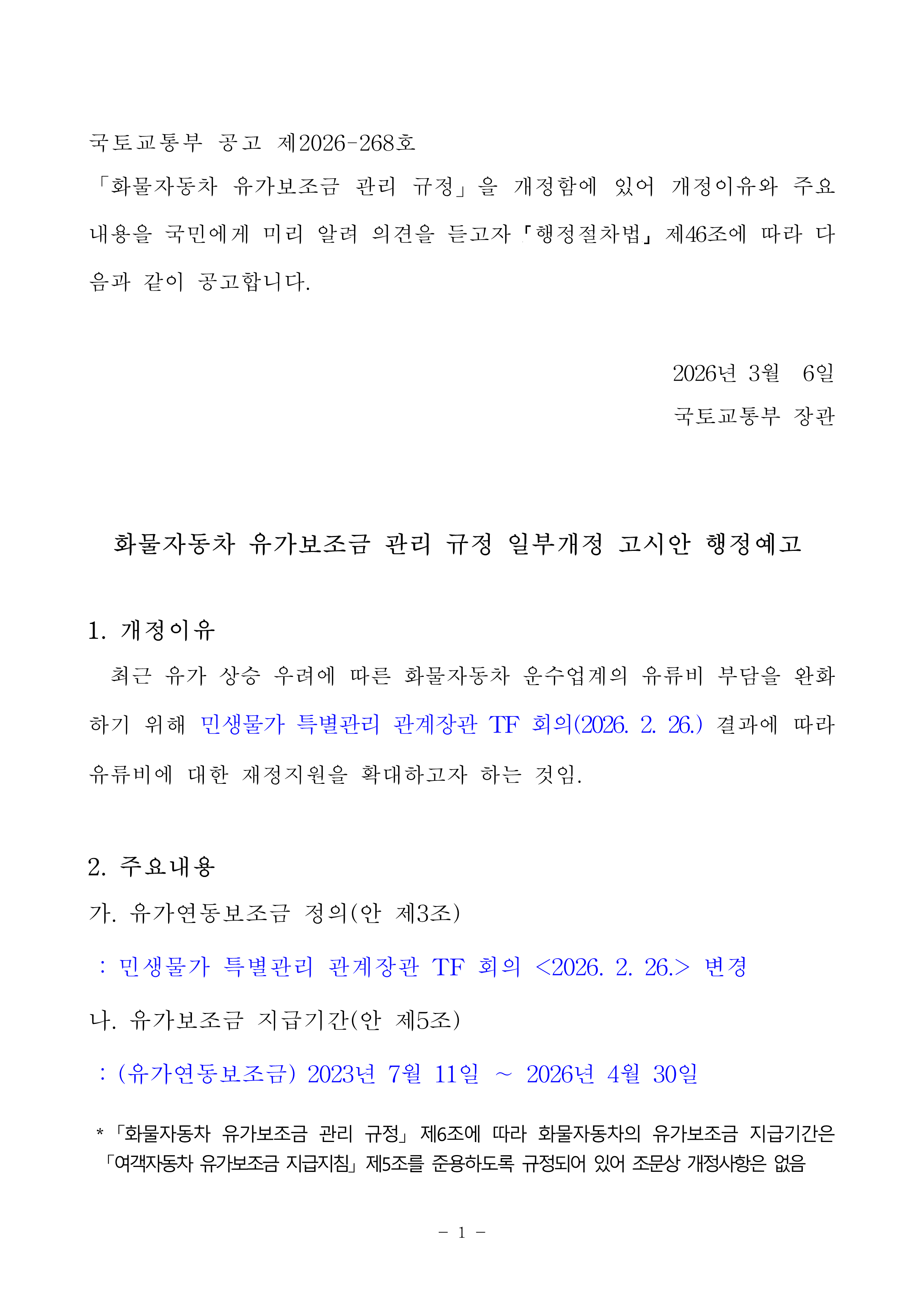 ȹ°ÀÚµ¿Â÷ À¯°¡º¸Á¶±Ý °ü¸®±ÔÁ¤ ÀϺΰ³Á¤ °í½Ã¾È ÇàÁ¤¿¹°í ¾Ë¸²