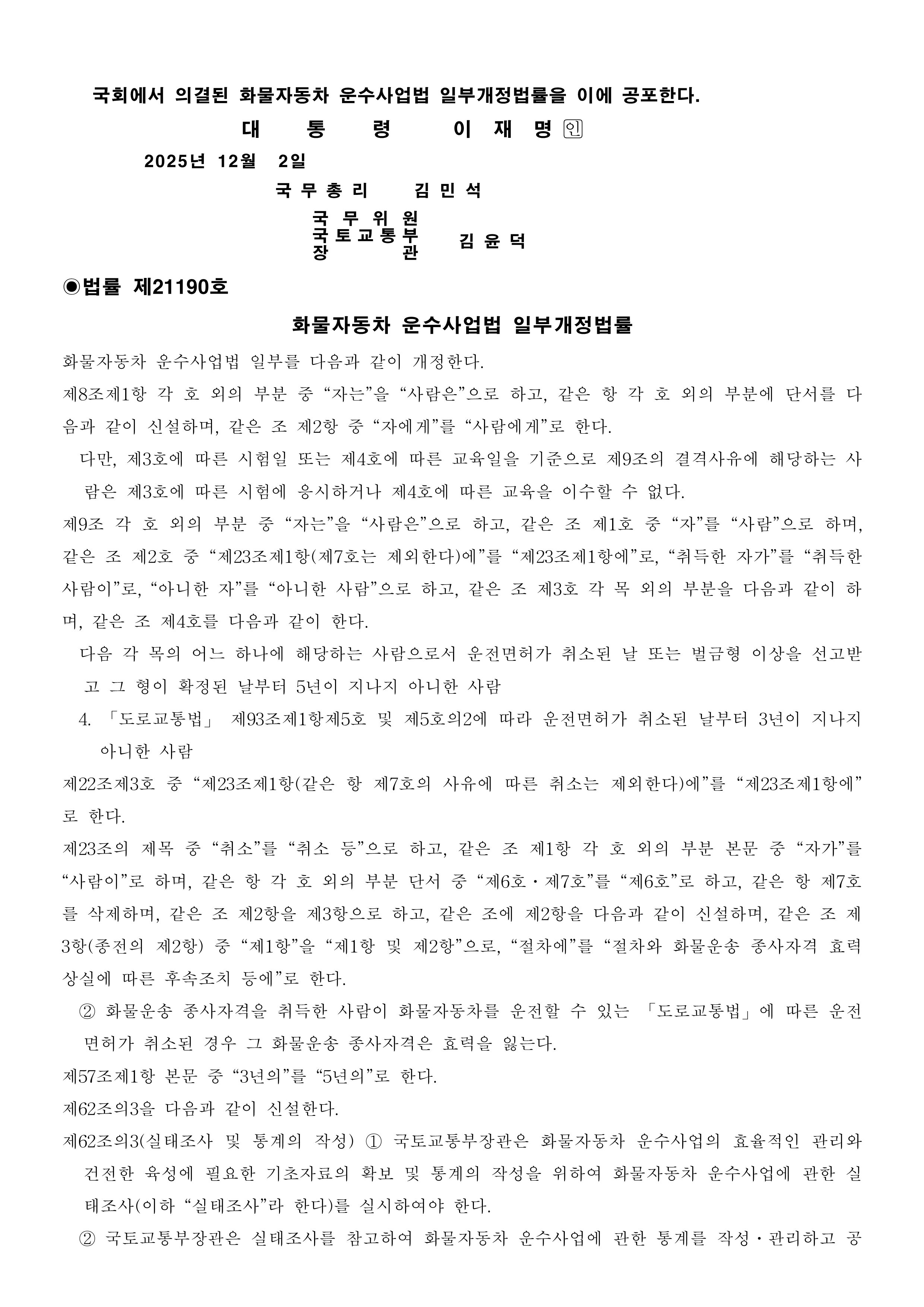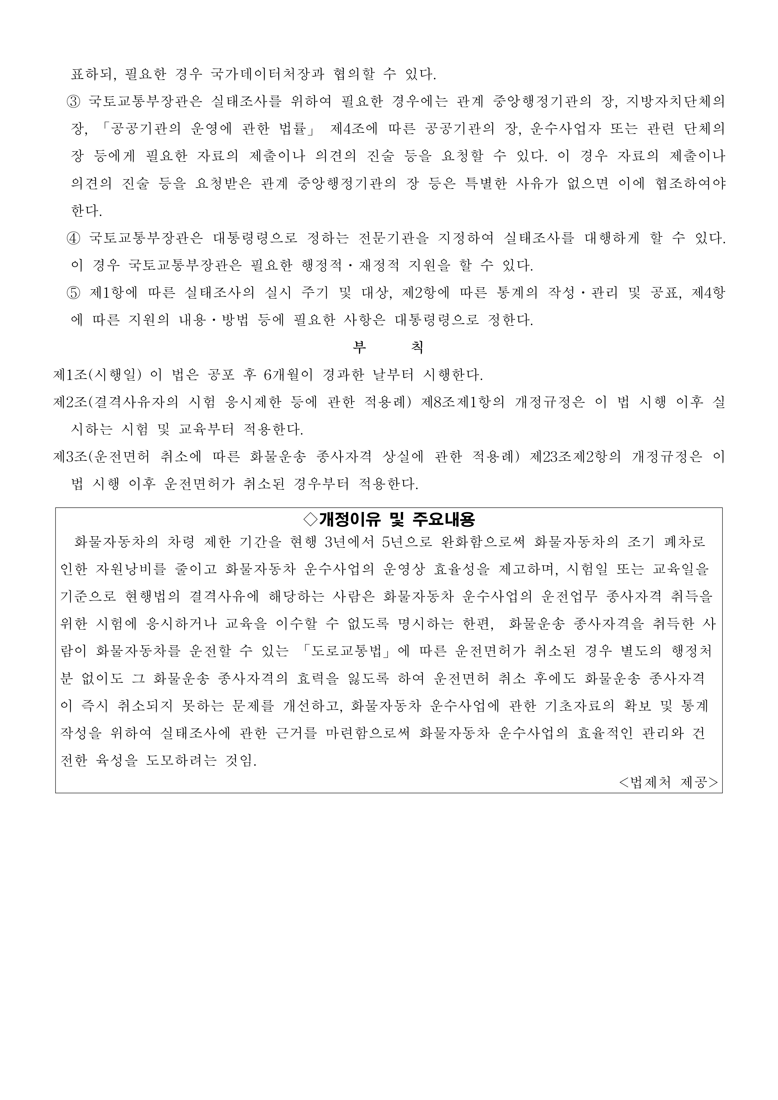 ¡¸È¹°ÀÚµ¿Â÷ ¿î¼ö»ç¾÷¹ý ÀϺΰ³Á¤¹ý·ü¡¹ °øÆ÷ ¾È³»