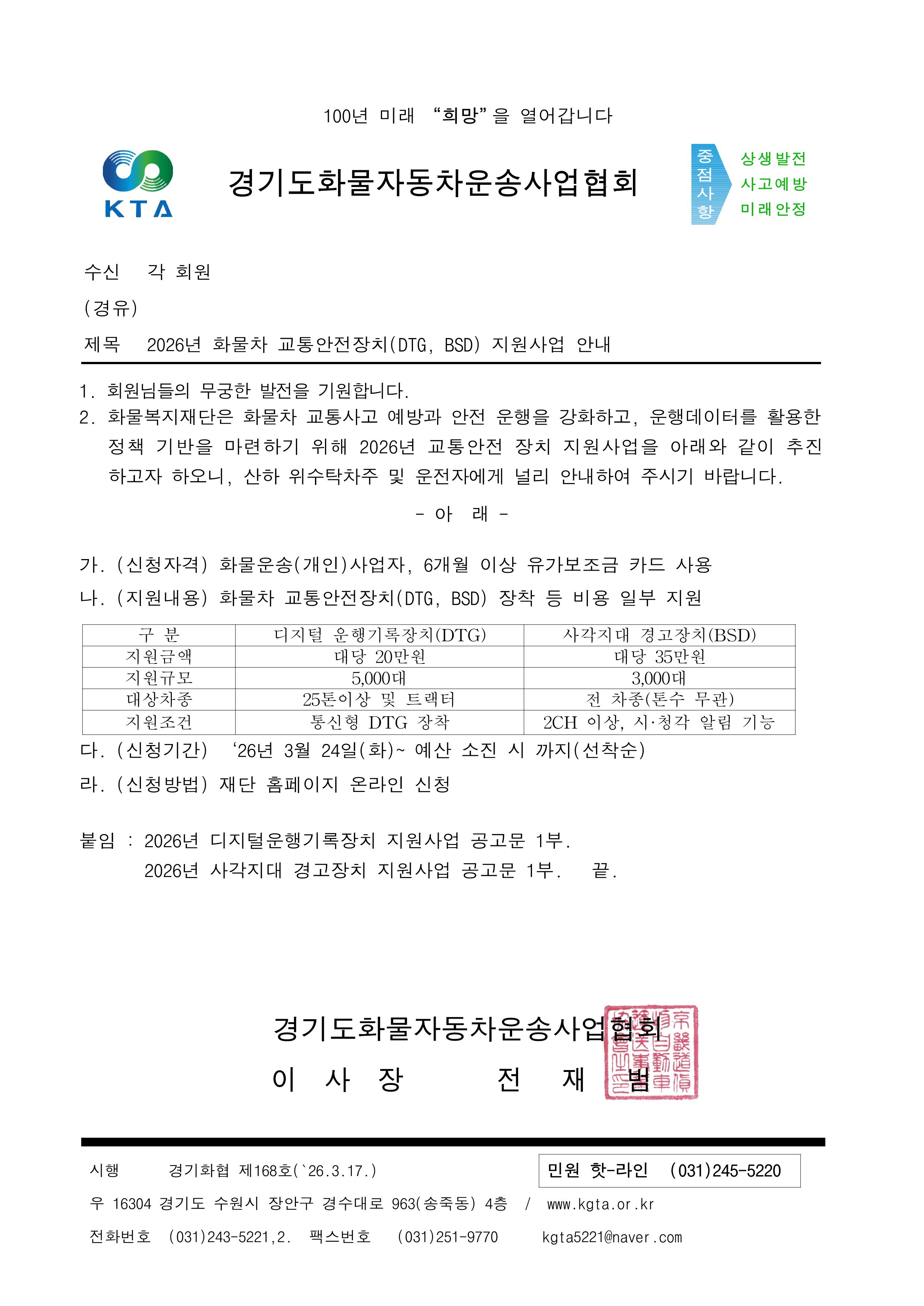 [03-18 16:33:35] 2026³â È­¹°Â÷ ±³Åë¾ÈÀüÀåÄ¡(DTG, BSD) Áö¿ø»ç¾÷ ¾È³»